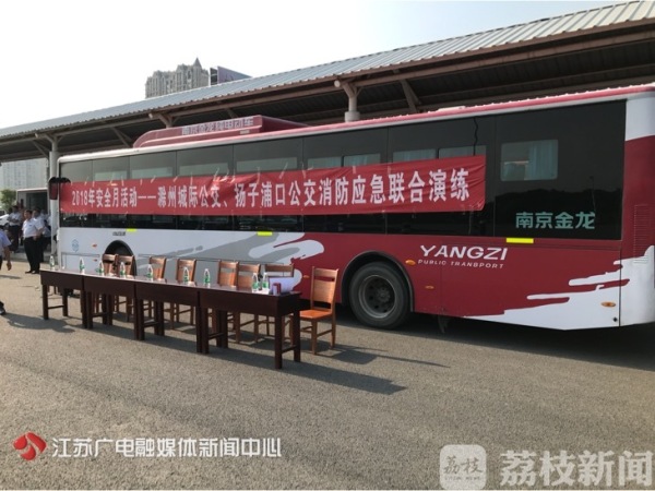 我苏网讯 一辆满载的公交车,因意外发生火灾后,大家应该怎么办?今天下午,南京扬子浦口公交联合安徽省滁州市城际公交进行了一场跨省消防演练。