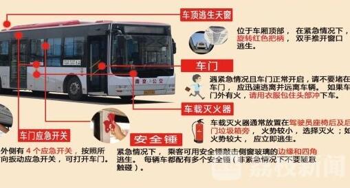 2、靠窗边乘客用安全锤猛烈敲击车窗,如未发现安全锤的,利用一切可击碎玻璃的硬物来击碎。穿高跟鞋的女士可用高跟鞋来击碎玻璃(注意技巧:不要敲击玻璃的中间,应敲击玻璃边缘处),击碎后迅速逃离。随后司机和乘客立即取出灭火器,对准起火点灭火自救,火势很快被扑灭。在各现场人员的指挥下,有秩序地进行疏散(反复告诫:请大家不要慌张,服从指挥,不要拥挤抢道。