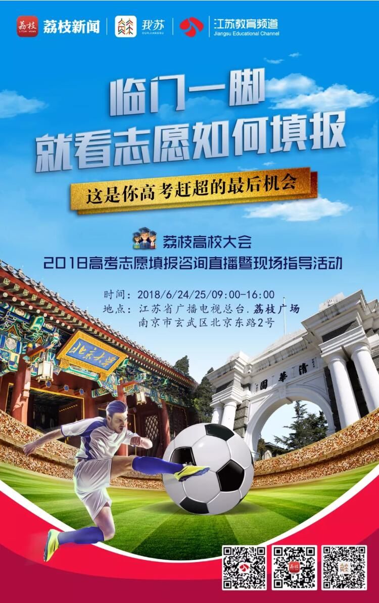 6月24日—25日,江苏广电总台教育频道、荔枝网、我苏网联合推出“荔枝高校大会”2018高考志愿填报咨询直播暨现场指导活动,最新鲜的资讯,最专业的解读,最权威的咨询...确认过眼神,Ta是考生最需要的人。