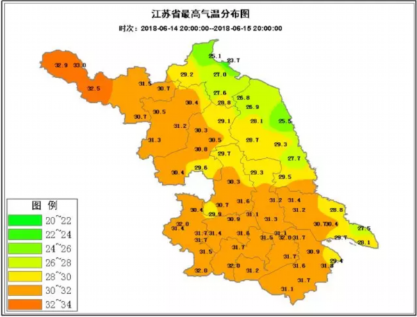 今晨最低温度: 全省21℃左右,6月16日最高温度: 本省西北部地区32~33℃,其它地区29~30℃