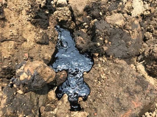 图为土坑渗水漂浮油污,地下水已被污染。官网截图