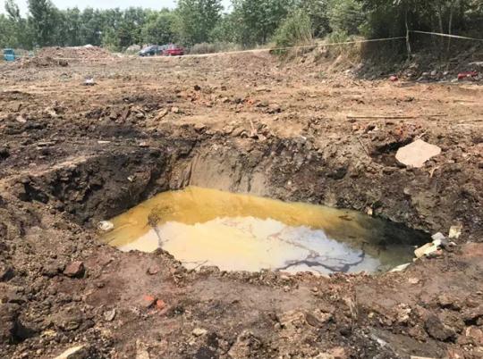 督察人员让挖掘机挖开部分油泥地块,发现废油已层层渗透至土壤之中。一些土坑渗出的地下水浮着厚厚的黄褐色油污,地下水显然已被严重污染。督察人员目测,此处距离长江水线直线距离只有600米左右。督察人员对周边检查时还发现,一些油泥在收集后被弃置在厂区西侧农灌渠边,渠水已被油污污染。在督察组严格要求和督办下,6月12日晚,如皋市连夜在现场清理出废油残渣0.756吨,油土约20吨左右。