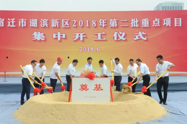 湖滨的六月生机勃勃,六月的湖滨激情似火。6月16日上午,湖滨新区举行2018年第二批重点项目集中开工仪式。区党工委书记唐元凯,区党工委副书记、管委会主任钱信松等区领导与京东物流集团副总裁吴洁、北京尚科建筑工程有限公司副总经理佟维龙、颐高电商产业园江苏片区运营总监胡荣、中铁十二局项目经理龙燕华、通威集团华东片区总经理丁永国等嘉宾出席仪式,并共同为开工项目培土奠基。