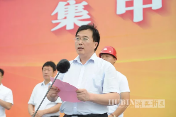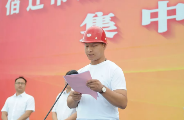 受唐元凯委托,钱信松代表区党工委、管委会,向项目的开工表示热烈的祝贺。钱信松指出,当前,市委、市政府明确要突出项目建设主旋律,紧扣招商引资和项目建设这根主线,正掀起新一轮的项目建设、招商引资热潮。湖滨新区紧紧围绕“宿迁城市新中心”建设,深入开展“项目推进年”活动,大力营造“一切围绕项目转、一切围绕项目干”的氛围,组建了“三大指挥部”和18个项目组,健全完善了一系列项目推进机制和考核机制,并取得了阶段性成效。今年实施的“三大类”86个重点项目,年度计划投资80亿元,目前已完成投资32.6亿元,其中25个列市重大项目,已完成投资17.6亿元。