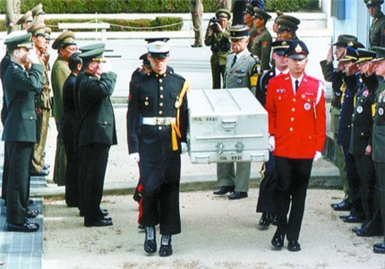 图为1997年在板门店举行的美军遗骸送还活动