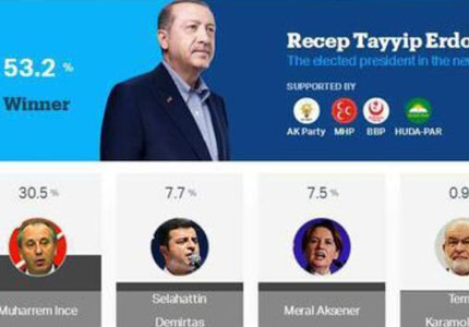 海外网6月25日电 据土耳其当地媒体报道,当地时间24日,土耳其总统大选举行,根据最新统计结果,埃尔多安获得超过半数选票,赢得连任。