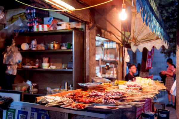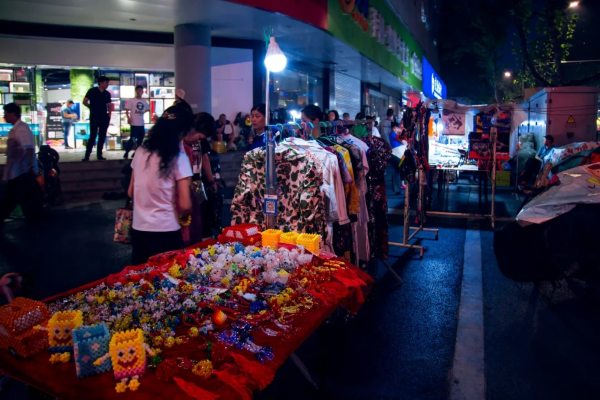 北起大石桥街,南至越时空。傍晚七点半,两百米长的夜市延伸开去。那些夜色里亮起的灯光,照亮五花八门的摊位,透露着都市最原始的质感。