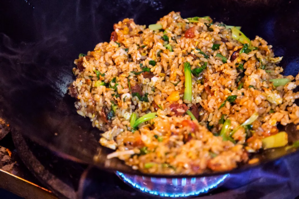 串串跟旁边夫妻开的炒饭摊是标配。这对夫妻在这盘踞了快五年,炒饭、炒面、炒河粉、土豆粉的手法早已炉火纯青。酱油迸发着香气,在萝卜酱丁的点缀下升华。