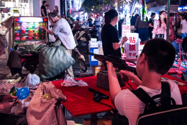 气枪摊的大爷年逾八十,许多南京人从小玩到大。虽然价格从一发一毛钱涨到了两毛,但还是会五十发起步。