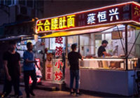夜晚的吉兆营不亮堂,人们却毫不顾忌黑暗。有的把自己塞进心仪的馆子里,也有的在街边小摊抱着个碗就开始了大快朵颐。