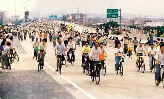 那时候,街上除了公交车,就是自行车,大家都是骑自行车上班。
