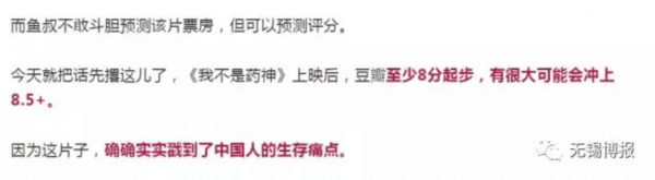 业内颇有知名度的公众号“独立鱼电影”称它是零差评国片,并预测它豆瓣至少8分起步,有很大可能会冲上8.5+。
