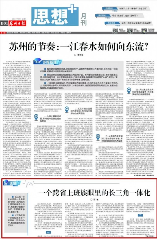 而就在这两年,长三角一体化多次按下“快进键”。以往长时间停留在设想层面的议题,以肉眼可见的速度进入现实操作层面。各种动向吸引着我的注意力,因为我既是一名饶有兴致的观察者,也是一个小小的利益攸关者。