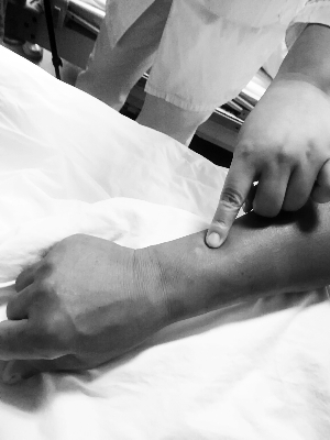 宋先生手臂被蜱虫咬伤留下的痕迹