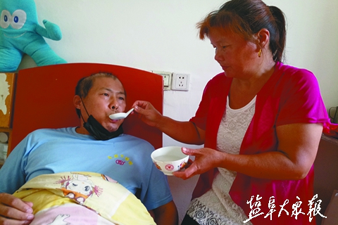 △葛龙妹服侍丈夫冯昌猛。