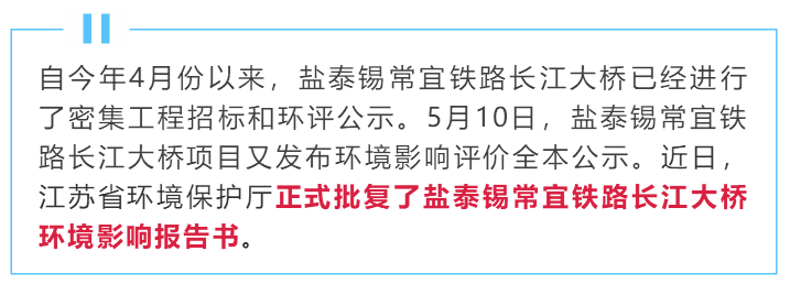 盐泰锡常宜铁路长江大桥为新建公铁两用特大跨江大桥,项目位于江阴长江大桥下游约3.4公里处,全长7公里。