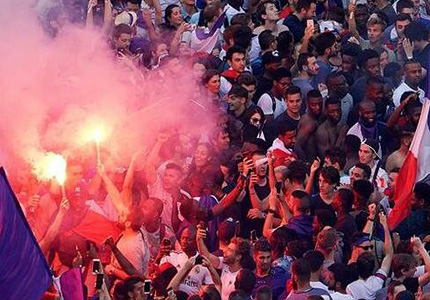 北京时间7月16日凌晨,法国4-2击败克罗地亚,获得2018年世界杯冠军。法国多地发起通宵庆祝活动,狂欢者砸店抢酒,与警察发生冲突,多名闹事者被捕,还有一男子因庆祝跳入运河身亡。