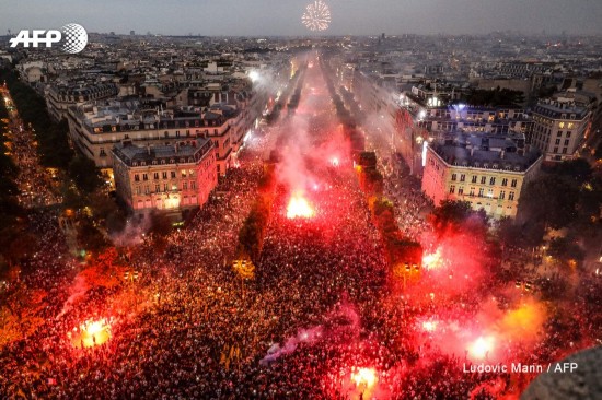 随后法国多地开展了庆祝活动,球迷们尽享夺冠时刻