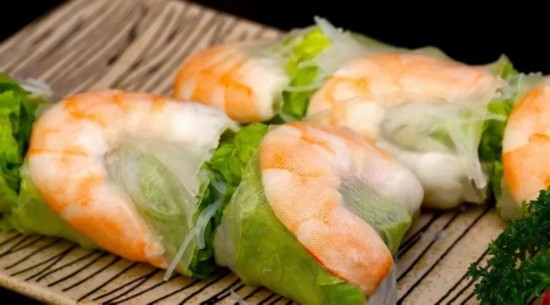肉棕、炸春卷、牛肉粉、虾饼、滴漏咖啡、越南河粉、越式螃蟹、甘蔗虾、炸象鱼、各种水果……