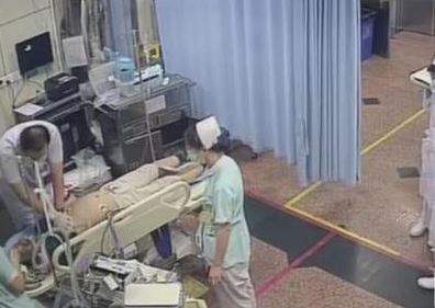李护士向记者介绍了当时的情况:“我们护士也没人换,我就上去换了一下之前的护士。心肺复苏不能停,要一直按着,边走边按深度又不够,我只能爬上车按,继续心肺复苏。算上在抢救室的按压时间,再加上把病人送到DSA的时间,大概有15到20分钟。”