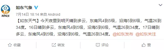 如东天气预报显示