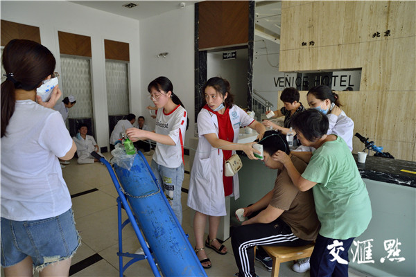 但是,记者了解到,在紧张的疏散转移过程中,丹阳华山医院先后有21名医护人员,因过度劳累和呛入烟雾而累倒。几名医护人员,在病人全部转移后瘫坐在地,面色发红,粗气直喘,场面令人动容。
