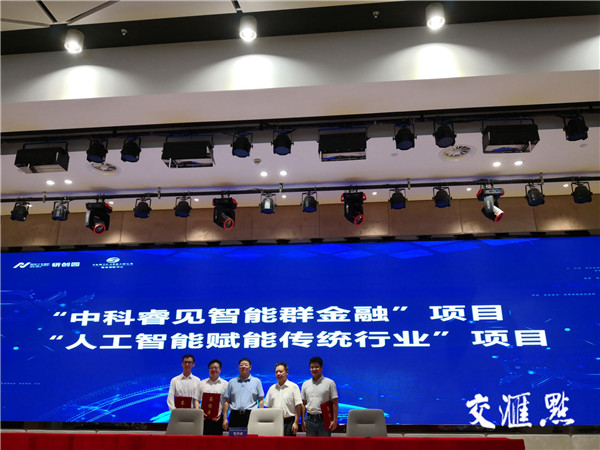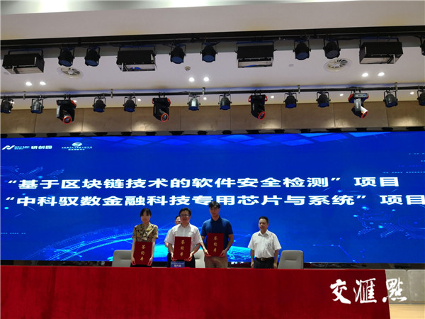 签约仪式上,江北新区与中科院计算所签署了战略合作协议,研创园与计算所双创学院签署了南京创新中心项目执行协议,“中科睿见智能群金融”、“人工智能赋能传统行业”、“人工智能+教育”、“中科劲点室内定位物联网芯片”、“基于区块链技术的软件安全检测”、“中科驭数金融科技专用芯片与系统”等六个项目也同步签约落户研创园。会上还举行了中科院计算所南京创新中心揭牌活动。
