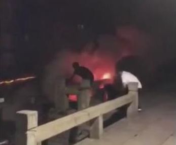7月21日晚上,苏州市山塘街边的一艘游船发生火情。就在火势不断蔓延时,一位市民挺身而出,将大火扑灭。