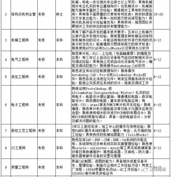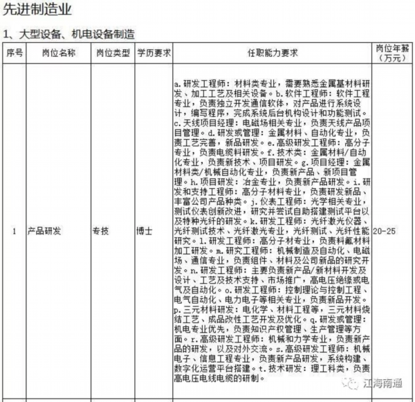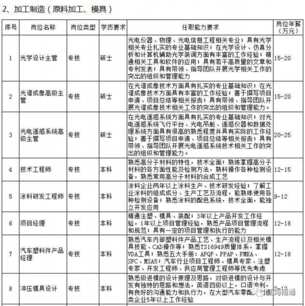 日前,《南通市2018年度高层次紧缺人才(岗位)目录》出炉,急缺人才岗位102个,主要涉及先进制造业6大类66个岗位、现代服务业3大类36个岗位。