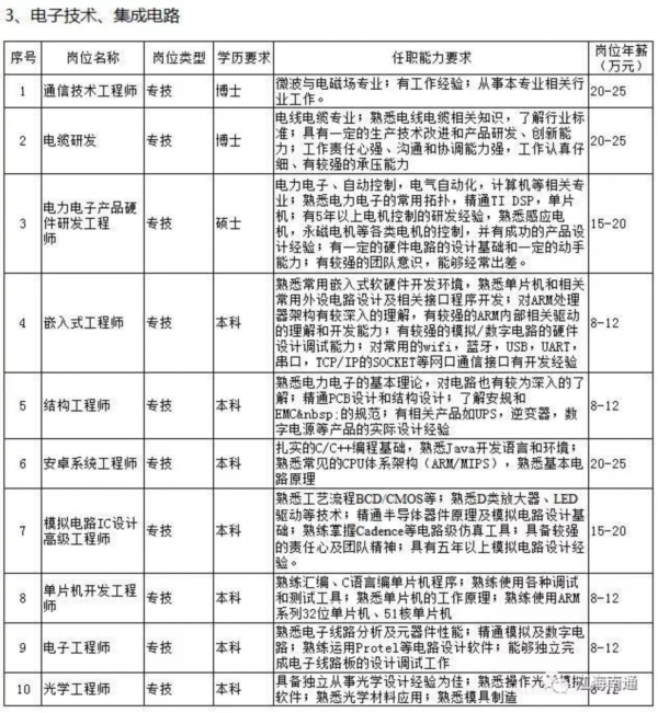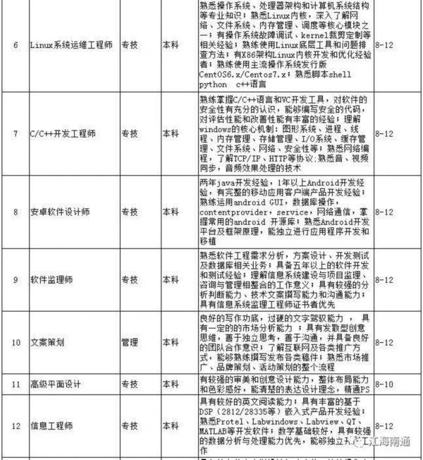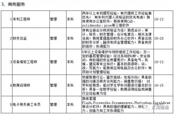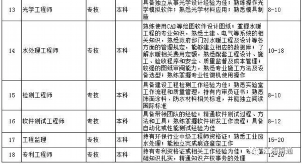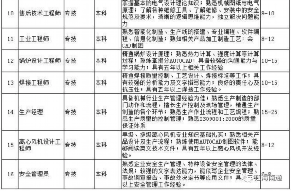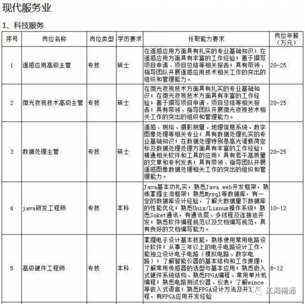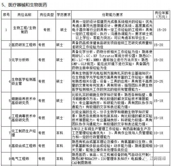 据了解,经过近半年的专家座谈、深入调研、问卷调查、园区走访以及与第三方专业机构的紧密合作,市人才服务中心科学编制了《南通市2018年度高层次紧缺人才(岗位)目录》,涉及先进制造业和现代服务业近百个具体岗位的学历要求、任职能力要求及岗位年薪等内容,其中科技服务领域人才需求最旺盛,紧缺岗位需求18个,其次为大型设备、机电设备制造行业,有16个紧缺人才岗位。