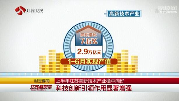 数据显示,上半年江苏高新技术产业稳步增长。1-6月实现产值2.9万亿元,同比增长7.6%,比去年同期提高1.77个百分点,占规上工业比重达43.46%,全面完成上半年目标任务。