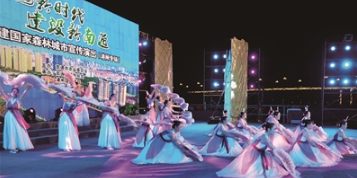 南通历来崇尚绿色,崇尚生态。2016年,市委、市政府正式启动国家森林城市创建工作,3年来,经过全市上下的不懈努力,目前5大类40项指标已全面完成。今年7月14日,五山国家森林公园全票通过国家评审,成为南通首个国家级森林公园。 港闸区委区政府高度重视、积极推进森林城市建设,大力实施中心城区高速一环绿化、宁启铁路绿化、森林公园建设、湿地公园建设、郊野林地、占领性绿化等项目。3年来,港闸区新增造林约3万亩,各项创建指标圆满完成。港闸区森林野生动物园预计今年10月开园,将成为南通首个野生动物园。全区已建成25个小游园,今年还将新建7个小游园,一幅绿水青山就是金山银山的美丽画卷正在徐徐展开。 此次宣传演出围绕创建国家森林城市的主题精心组编了12个优秀节目,用歌舞、情景表演、器乐表演、配乐诗朗诵等丰富多彩的艺术形式和震撼唯美的舞美效果,诠释了“大地植绿”“心中播绿”的创森行动,丰富了群众业余文化生活。 “演出非常精彩,我们不仅感受了大美南通的绿色美景,更对生态宜居的绿色森林城市充满憧憬和信心!”演出活动中,现场观众激动地为“绿色南通”点赞。