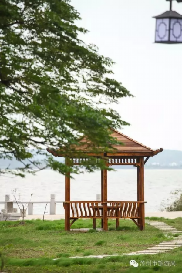 太湖边依水而建的亭子,草坪上供人休息喝茶的桌子,还有湖边随风摇曳的芦苇花……到处都是未经修饰的原生态自然风光。
