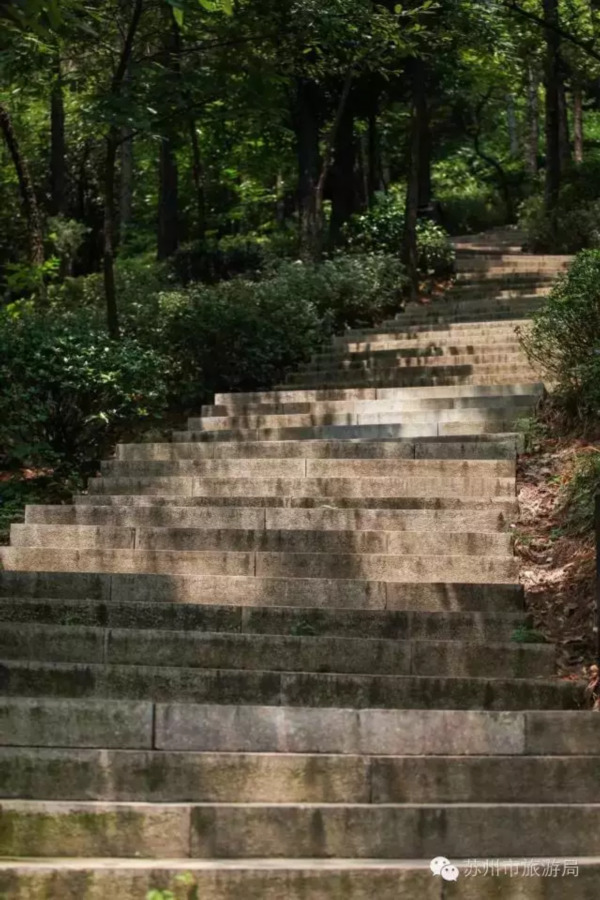 沿着山路一路往上,来到了半山亭,可以在此歇歇脚,从半山亭往下望,整个姑苏城尽收眼底,非常的壮观。