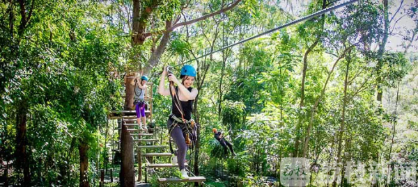 在宿迁三台山森林公园水杉林区域,有一座8000平米的森林探险乐园。最特别的是,层层叠叠的水杉遮挡了乐园的烈日,游客们可以尽情挑战各种探险项目。