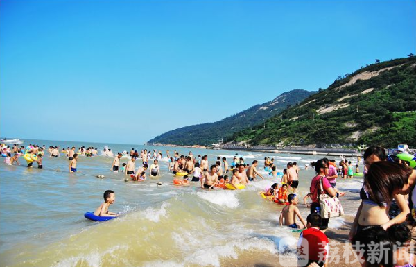 炎炎夏日,水上乐园、海滨景点迎来了大量玩水游客。上午十点多,记者在连云港连岛景区看到,蓝天白云下的阳光格外刺眼,但是大沙湾海滨浴场依然人潮涌动,不少游客在沙滩遮阳伞下歇息、观海,更多游客则与大海亲密接触。为了保障旅游安全,海滨区域配备了32名救生员,26名专职安全员。