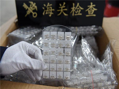 常熟海关在对一批申报出口至博茨瓦纳的胶鞋进行查验时,发现其中夹藏有4800枚耳钉,这些耳钉的造型均使用了“香奈儿”商标标识图形。经联系商标权利人香奈儿股份有限公司,确认这批耳钉未经授权,侵犯了权利人在海关总署备案的香奈儿(图形)商标专用权。 (来源:扬子晚报网;编辑/张闻芝)
