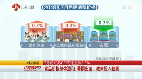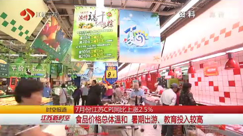 记者今天从国家统计局江苏调查总队获悉,今年1-7月,江苏居民消费价格总水平比上年同期上涨2.0%,其中7月份同比上涨2.5%,这是今年内同比涨幅第三次回归"2"时代。