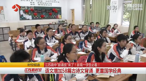 按照新课标要求,语文的古诗文背诵推荐篇目从14篇增加到72篇,要求学生更好地掌握国学经典。有语文老师表示,的确会给学生增加一定难度,但新课标强调传统文化的继承和学习,以江苏学生目前的古诗文阅读量来看,不必太过紧张。