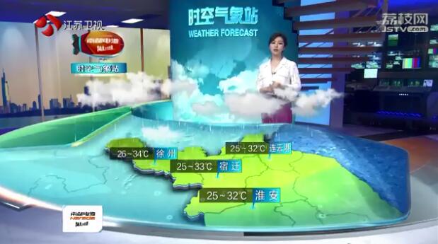 随着台风"摩羯"逼近,我们江苏今天高温程度稍稍有所缓解,下午两点,只有西南部分地区达到35度的高温。江苏省气象台继续发布台风警报,请有关方面注意防范。