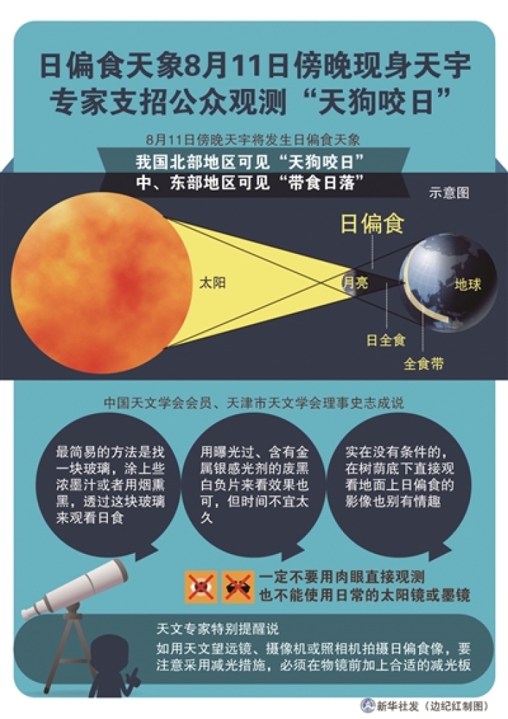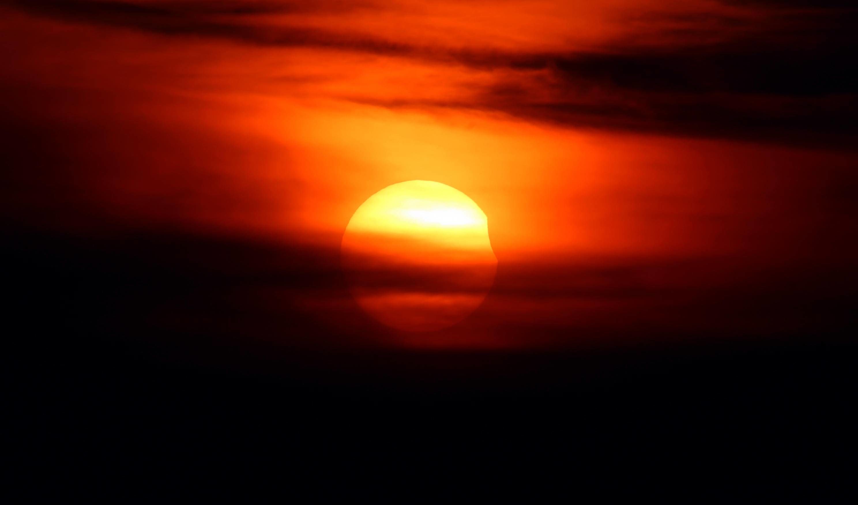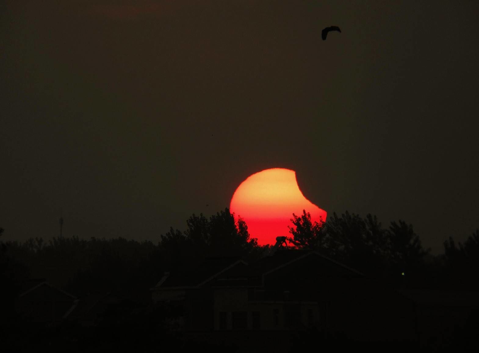今天(8月11日)傍晚天宇发生日偏食天象,这是今年的第三次,也是我国能观测到的唯一一次日食。其中,我国北部地区可见“天狗咬日”,包括江苏在内的中、东部地区可见“带食日落”。在南京、扬州、南通,不少市民用相机记录下了这一美丽景象。