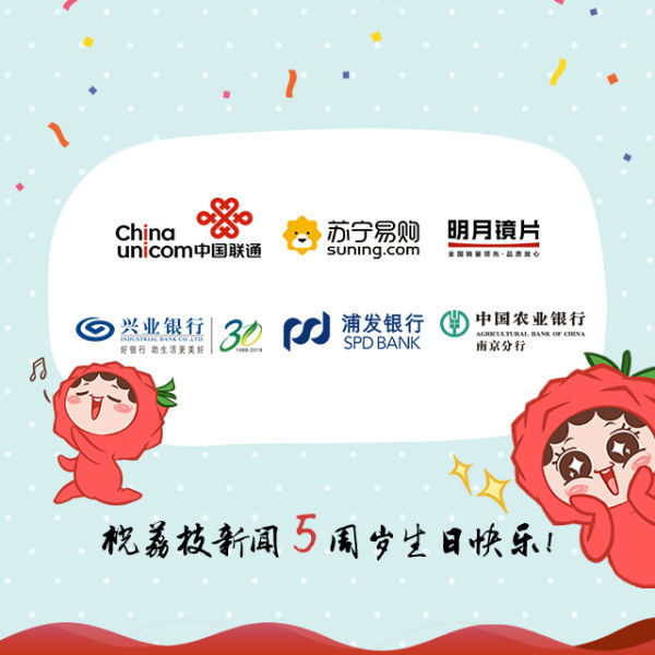 各大品牌“大V”也将在这里为荔枝新闻五周年生日打CALL送祝福,如果你也喜欢他们的祝福,欢迎转发并关注江苏网络电视台官微!你们将获得由荔枝新闻精心准备的五周年生日主题购物卡!
