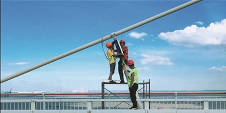 19日,记者从苏通大桥有限公司获悉,苏通大桥受今年第18号台风“温比亚”影响滑丝脱落的个别斜拉索阻尼器,经过工程技术人员连续两天的抢修,全部维修工作告一段落,所有部件均恢复如初。下一步,技术人员还将对大桥进行全面检查,增加相关抵御台风的措施,确保苏通大桥的安全通行。