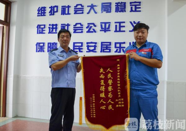 今天(8月20日)上午,中国海油盐城世纪大道加油站凌站长一行将一面写有“人民警察为人民 失而复得暖人心”的大红锦旗送到盐都区公安局巡特警大队,感谢巡特警大队成功处置一起加油跑单事件。
