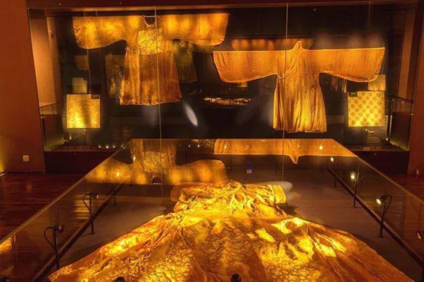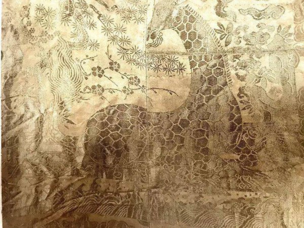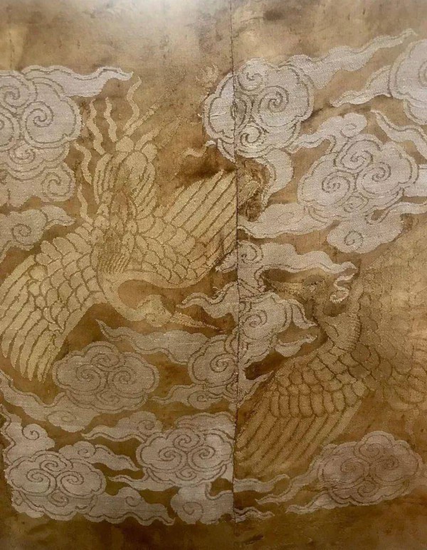 然而这些衣服经过了上百年的掩埋,墓室周围酸碱度和温湿度的变化,大多数颜色都已褪了,不过我们依然能从衣服上看到当年丝织品的精美图案。