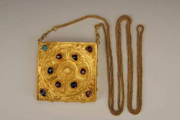 △嵌宝石莲纹金饰 明