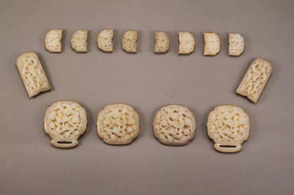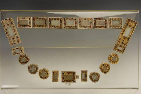 △嵌宝石镶玉金带板 明