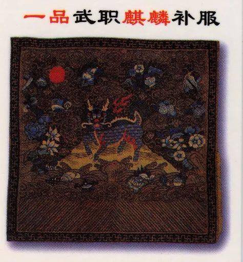 武官一品、二品绣麒麟、狮子,三品、四品绣虎豹,五品绣熊罴,六品、七品绣彪,八品绣犀牛,九品绣海马等。
