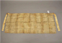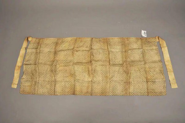 这块抹胸的作用其实就和今天女性穿的文胸一样,都是贴身穿的,只不过比现在的文胸大很多。这块抹胸呈长方形,长116厘米,宽50厘米,上边中间打有褶皱,两边各有一根系带,抹胸为绢质,质地光滑。