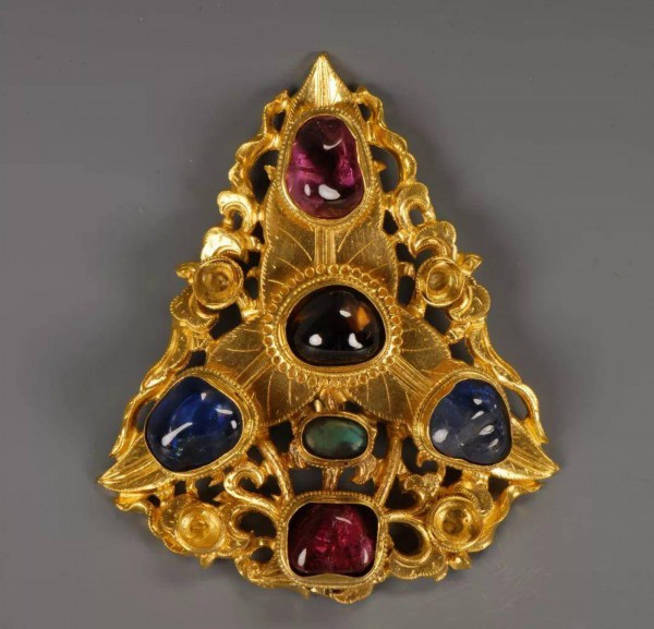 △嵌宝石金帽饰 明